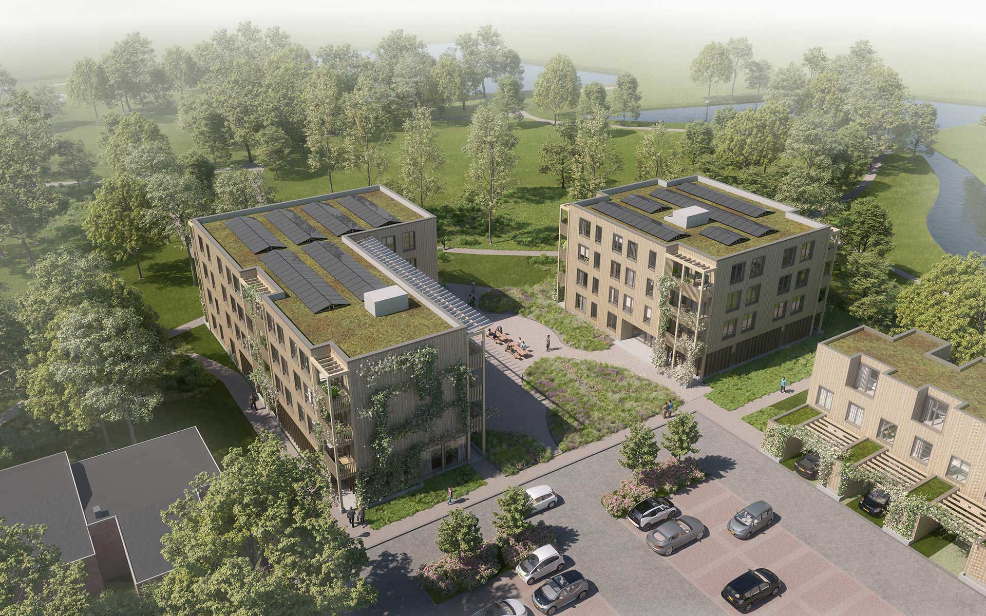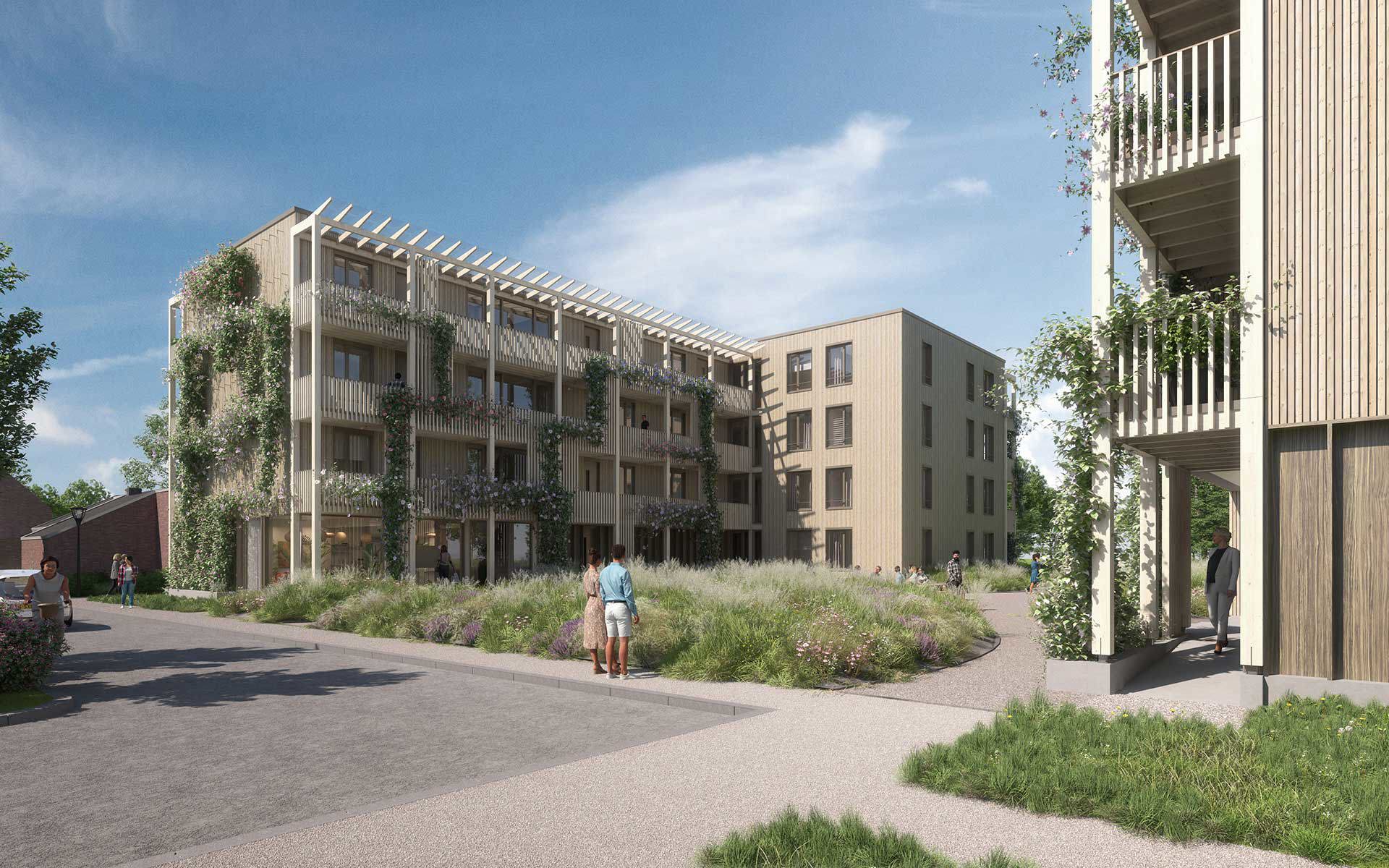 Wooncompagnie realiseert twee moderne woonblokken met in totaal 35 appartementen, allemaal voorzien van twee slaapkamers.