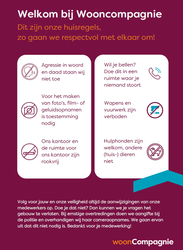 Bij Wooncompagnie accepteren we geen gedrag dat gericht is op de persoon. Denk aan: