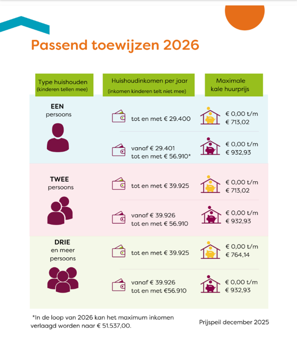 Jaarlijks worden de huur- en inkomensgrenzen aangepast. Voor het huren van een sociale huurwoning geldt een maximaal belastbaar inkomen. Het actuele overzicht vindt hier.